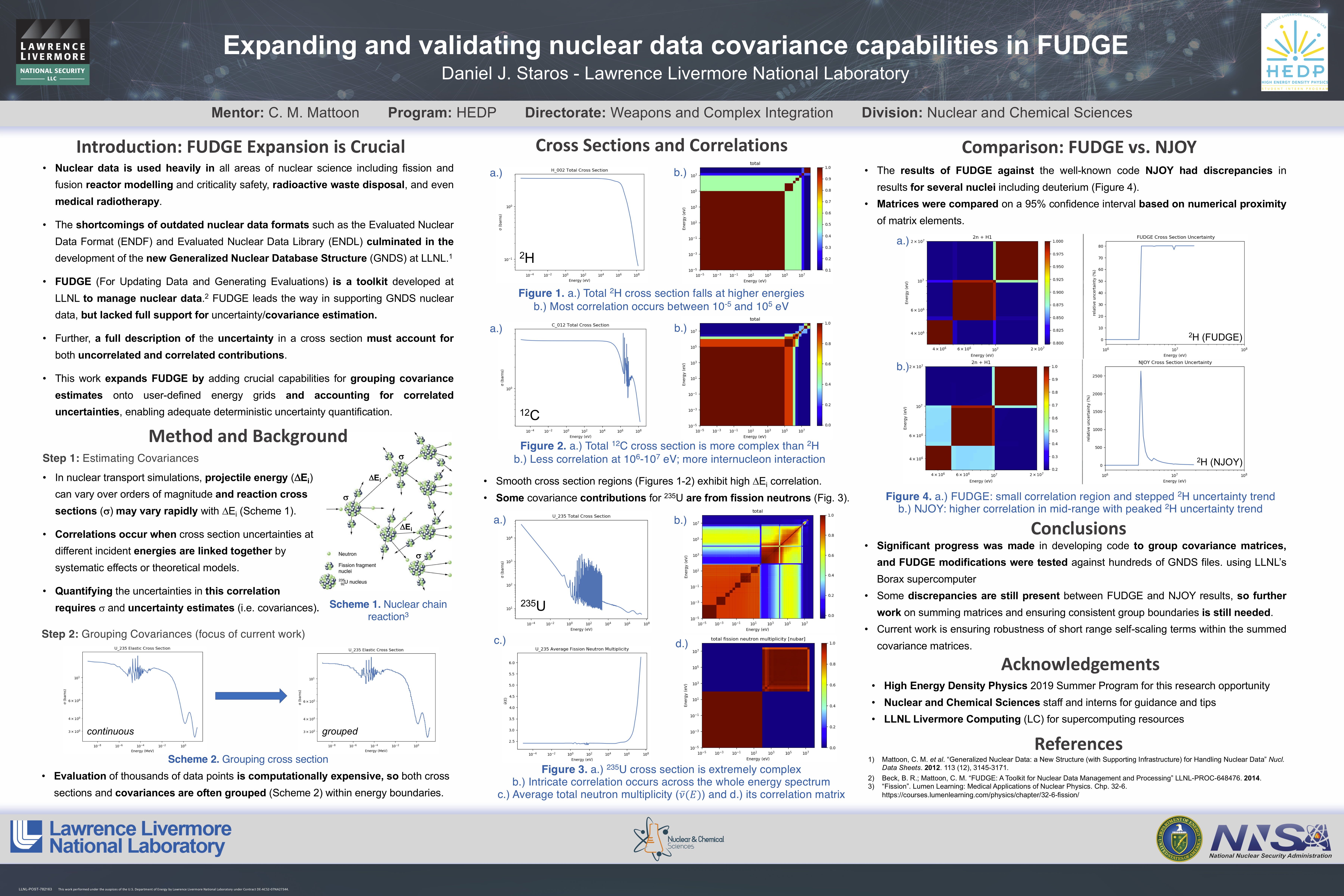 - Co-developing capabilities for the LLNL code FUDGE to improve the manipulation of statistical uncertainties in GNDS nuclear data, and thus numerical treatment of nuclear signatures (LLNL-POST-782163).